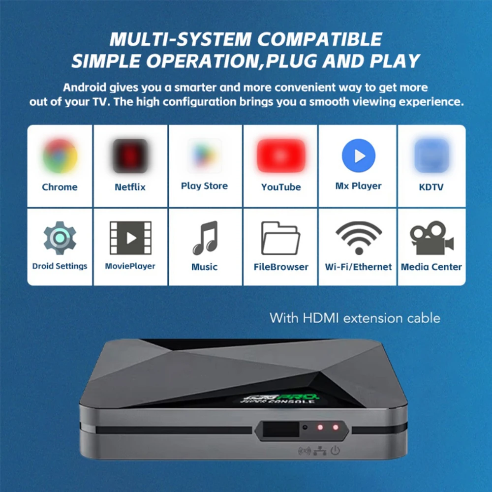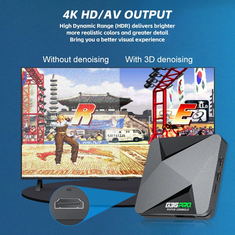 Beyond being a gaming console, the G36 PRO features the Android 9.0 system, enabling it to function as a TV box. Connect to WiFi to browse the internet, download apps, stream videos, and more. It’s not just a gaming device but a versatile entertainment hub for your home.