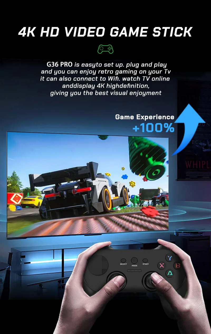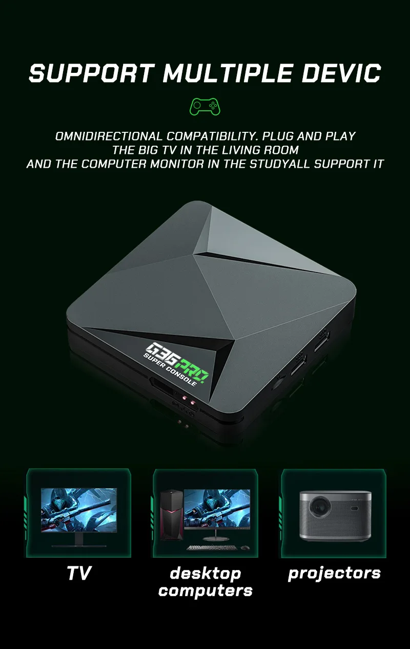 The G36 PRO supports output to multiple devices, such as TVs, computer monitors, and projectors. With 4K and 1080P high-definition resolution, you can enjoy your favorite games and content on the big screen with stunning clarity, adapting to different viewing setups effortlessly.