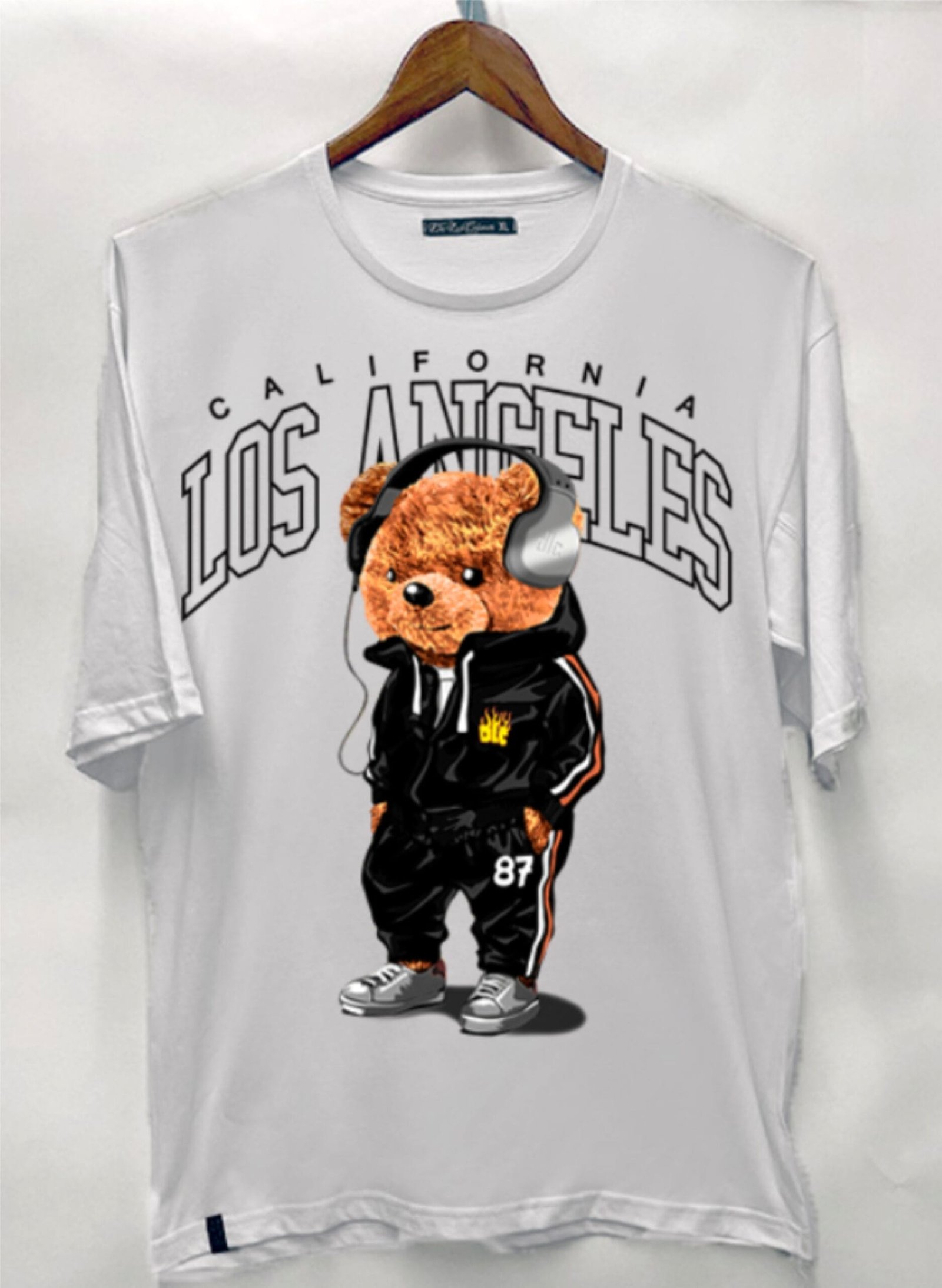 LA Vibe: Above the bear, bold, distressed lettering proudly declares “CALIFORNIA LOS ANGELES,” giving a nod to West Coast style and urban culture.