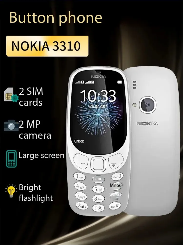The Nokia 3310 phone features dual SIM cards with straight keys, making it a great gift
