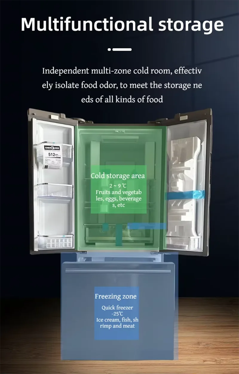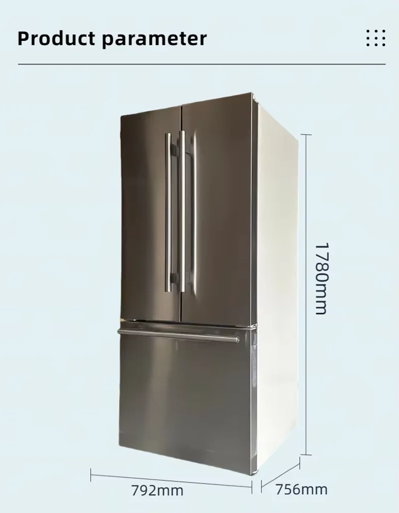 USA Brand 110V 220V 513L Fridges Large Capacity French 3-door Inverter Refrigerator Ice Maker Stainless Steel Panel Inside