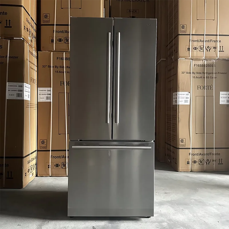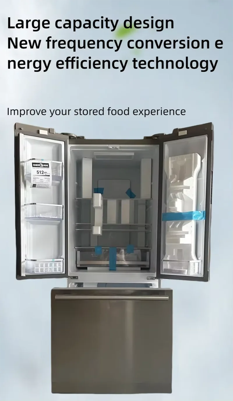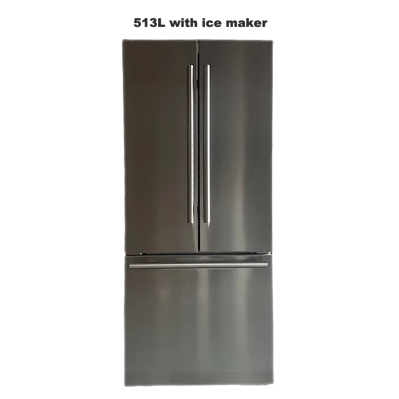 L&G same model usa brand 110v 220v 513L big capacity stainless steel panel with display french 3 door silver color with ice maker down freezer fast inverter save energy class A+++