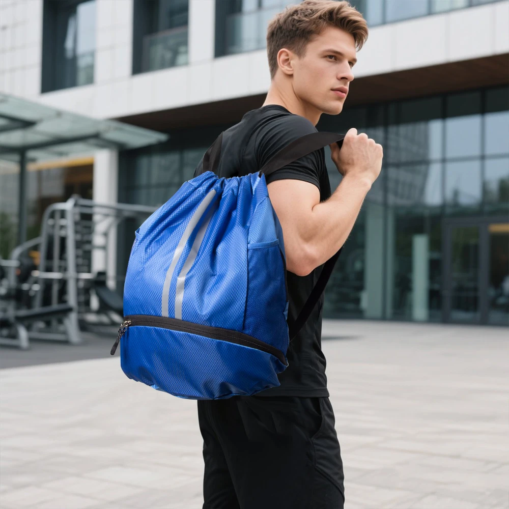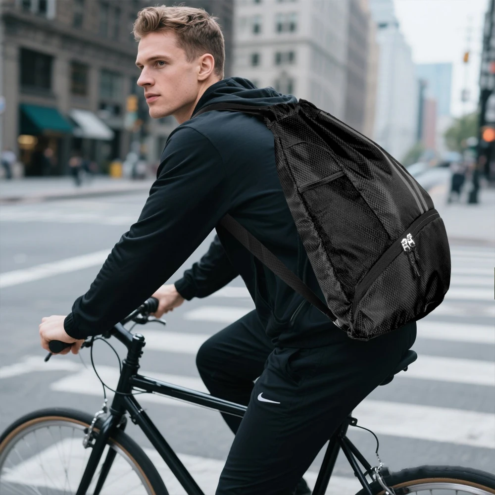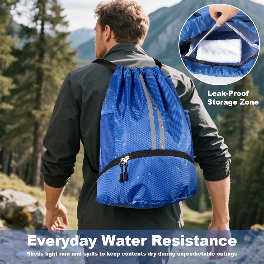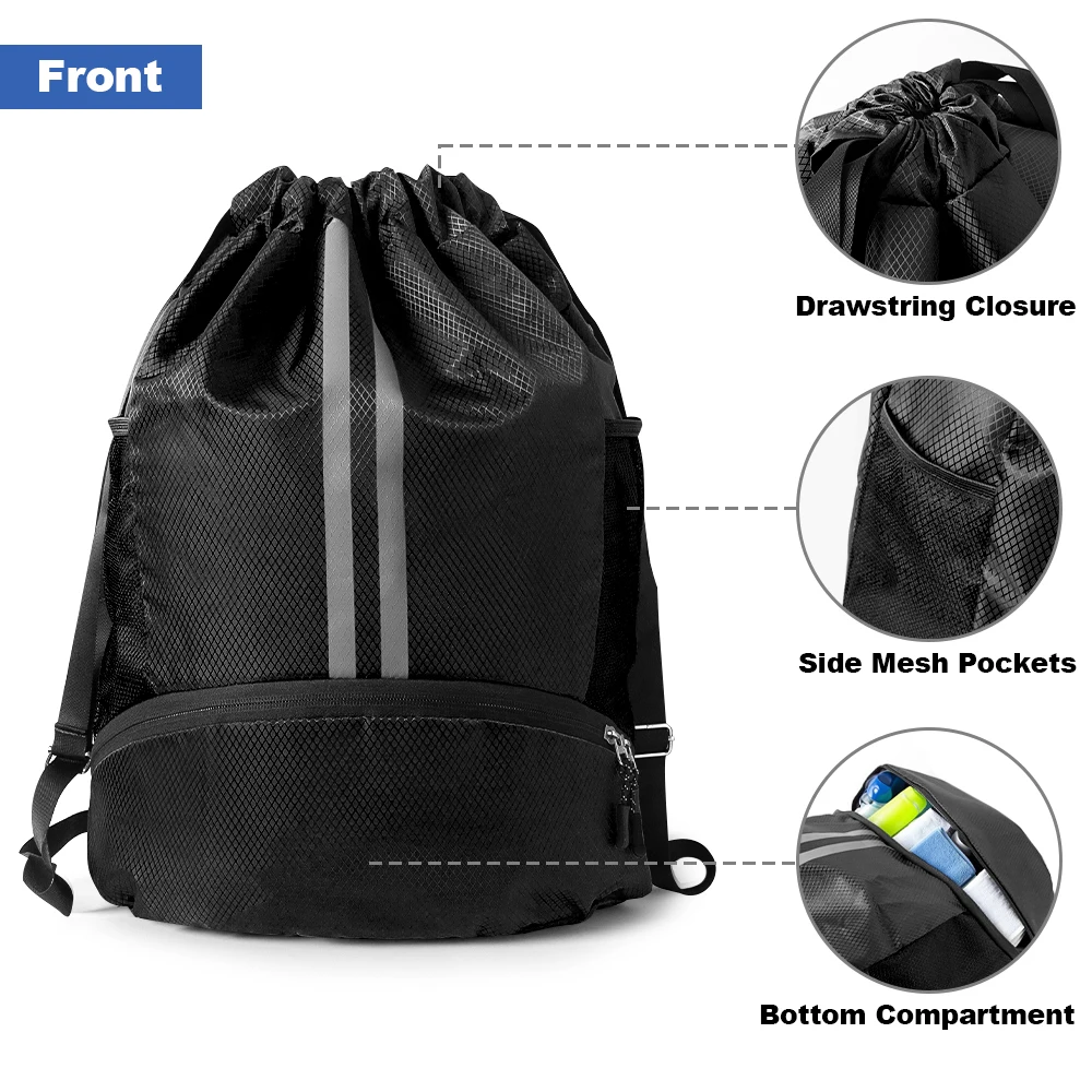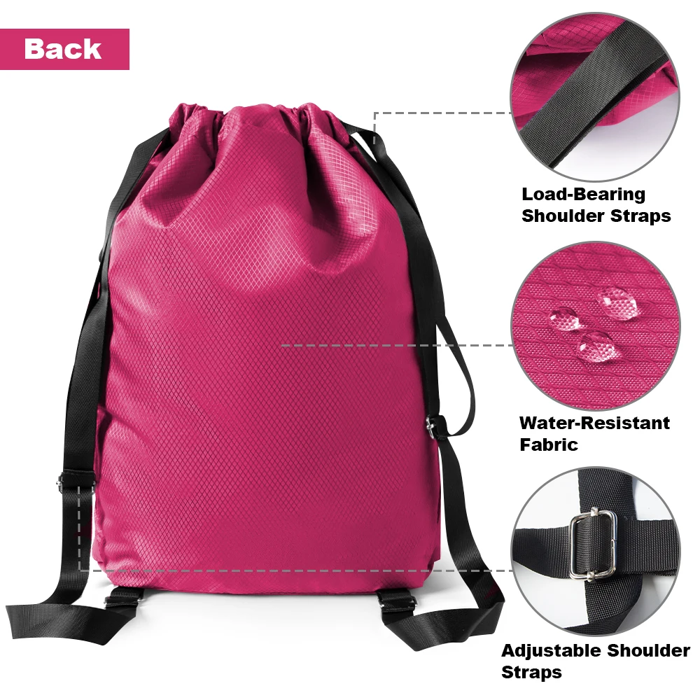 Waterproof Drawstring Backpack – Large Gym Sports Bag with Separate Shoes Compartment for Men Women, Swim Training Backpack