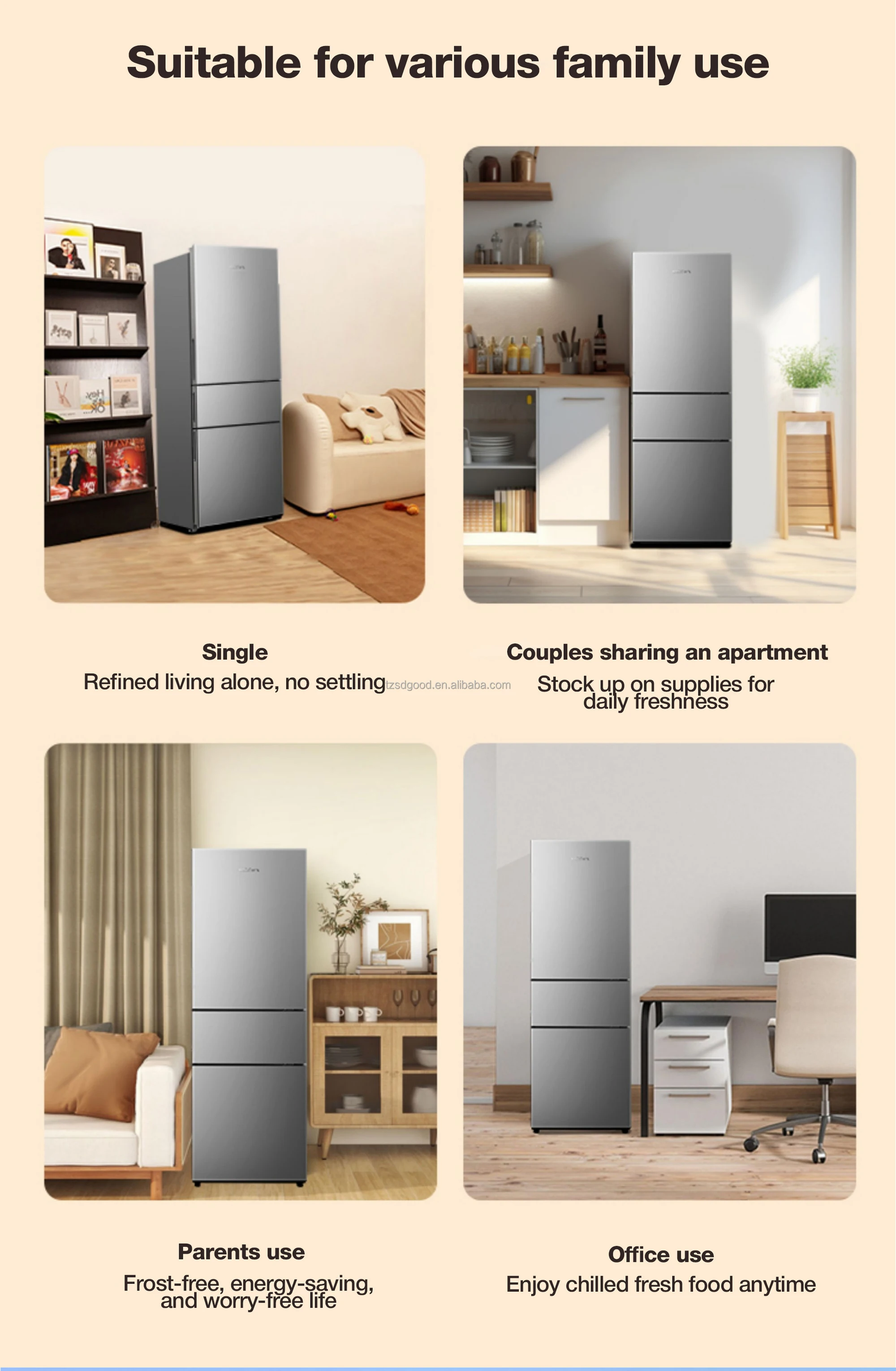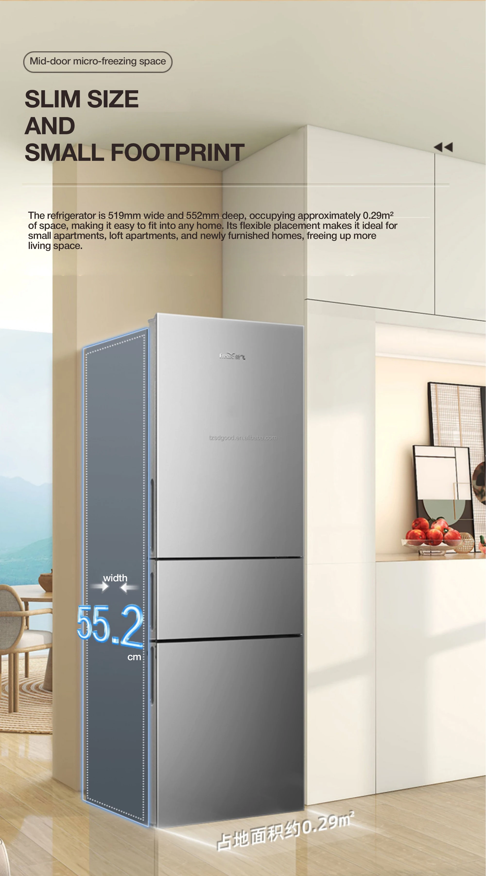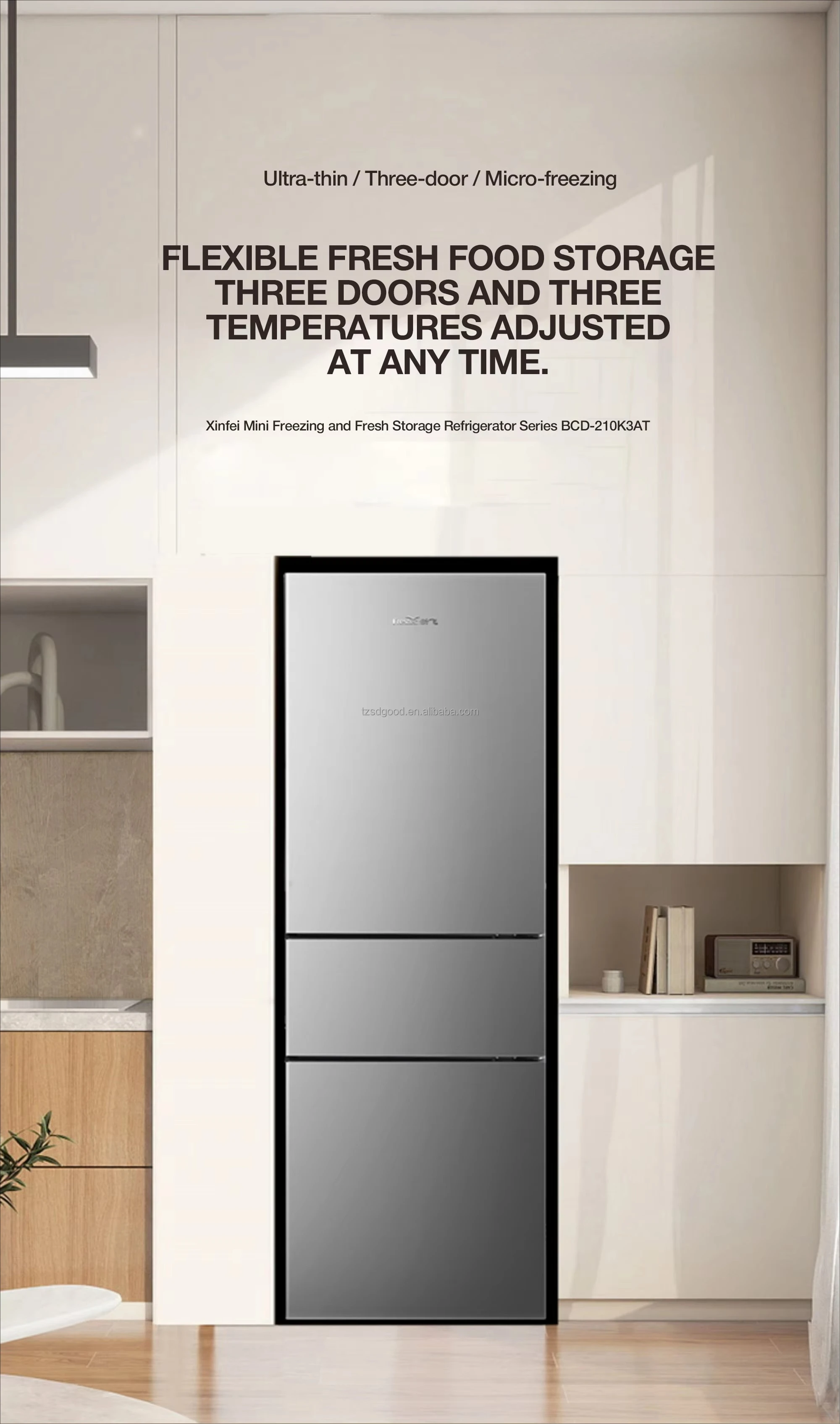 Brand: Frestec / Xinfei; Model: BCD-210K3AT; Door Structure: 3-Door; Color: Beautiful Gray Clear Shadow