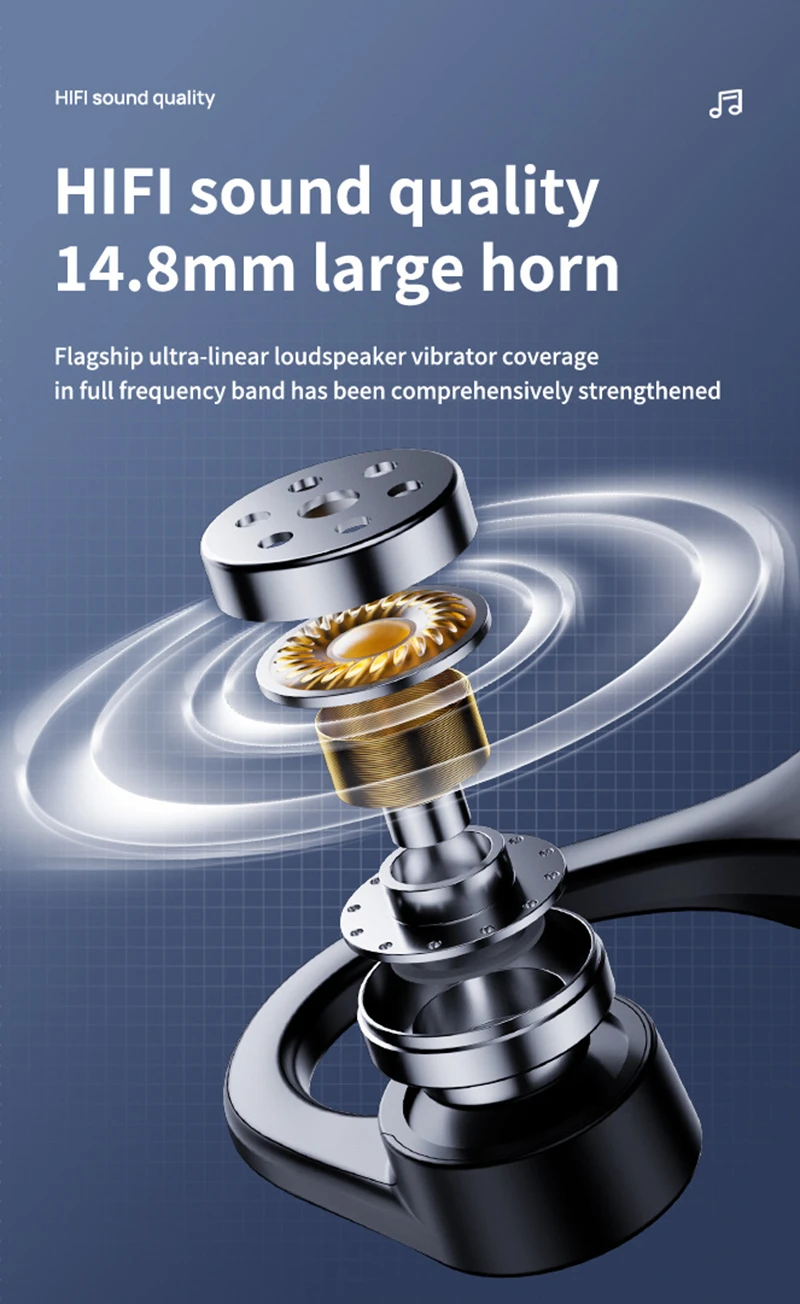 3. HIFI Sound Quality, 14.8MM Loudspeaker, Flagship Ultra-linear Speaker Vibrator Covering Low Frequency, Intermediate Frequency, High Frequency And Fully Strengthened