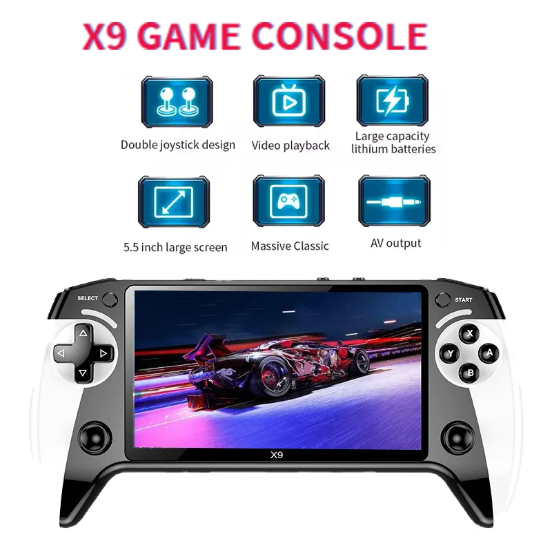 X9 portable game console, 5.5-inch HD screen, multiple languages, retro GBA Arcade video, 8 simulators with 360° non-slip joysti